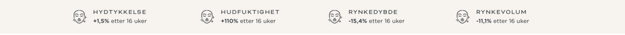 • Hyaluronsyre binder vann i hudlagene og gir fukt, spenst og volum