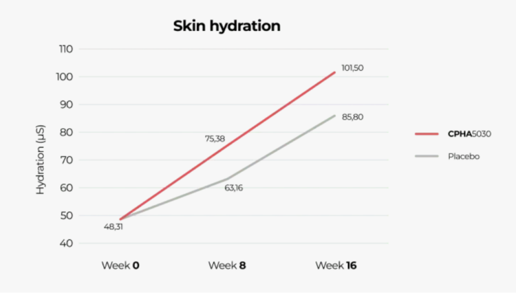 Resultatet viser en tydelig forbedring i hudens tetthet – mens placebogruppen ikke viste endring.