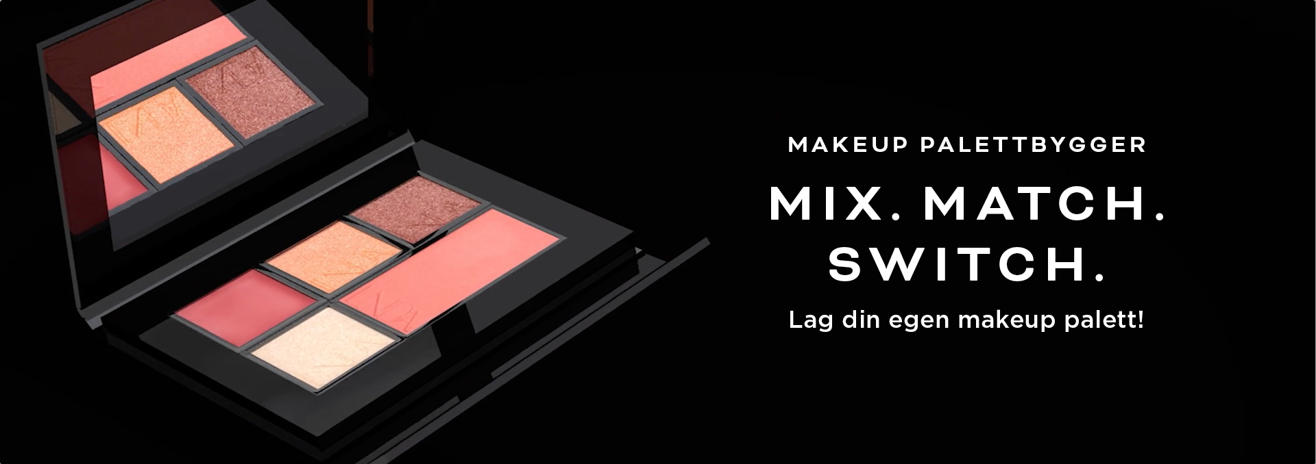 Sätt ihop din unika sminkpalett. Ögonskuggor, rouge, läppstift och highlight – allt på samma plats.